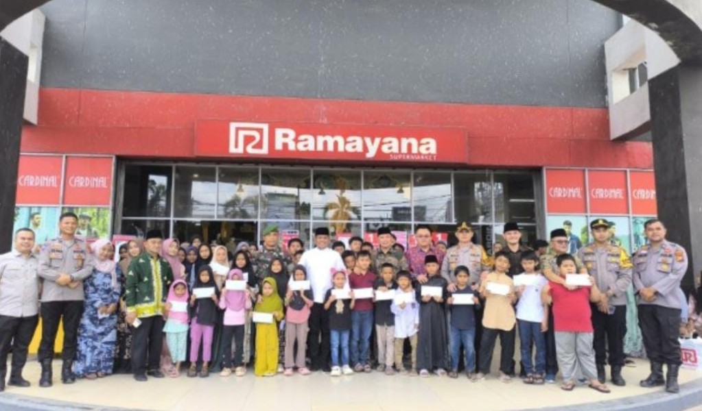 Terlihat raut wajah bahagia 500 anak yatim yang diajak berbelanja baju lebaran di Ramayana Departemen Store, Pangkalan Kerinci pada acara tersebut.