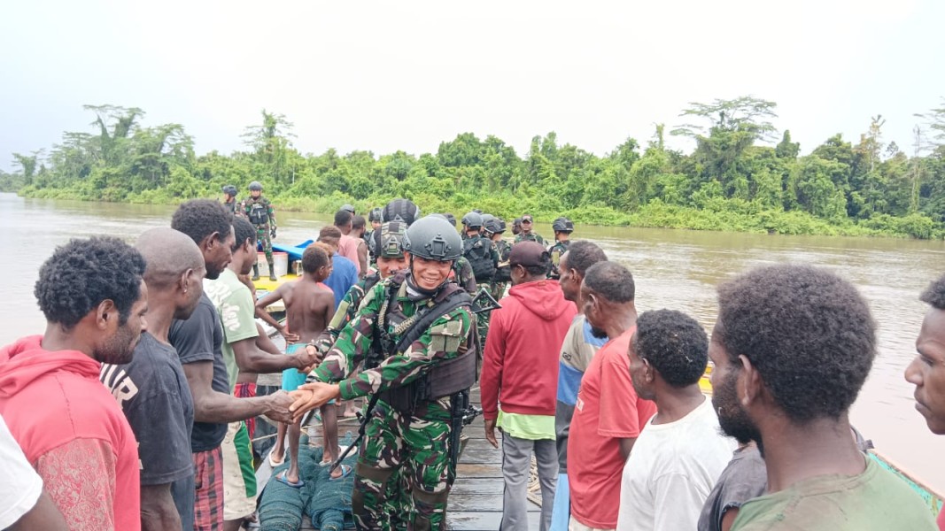 GARDAPOS.COM, MERAUKE -Personel Satgas Yonif 123/Rajawali yang bertugas di wilayah papua mendapatkan sambutan hangat dari masyarakat setempat, Senin (25/8) di beberapa pos terutama di pos Asgon, Tomor dan Bade.