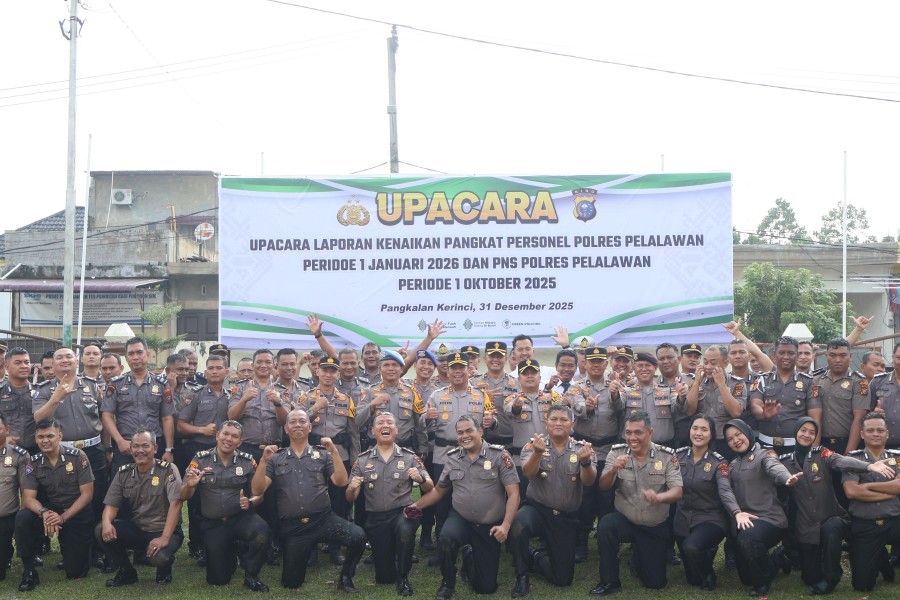 Menariknya ada dua orang Kapolsek naik pangkat yakni Kapolsek Langgam IPTU Jerri Paulus Sinaga, SH dan Kapolsek Kuala Kampar, AKP Rian Onel SH MH serta Kasi Humas Polres Pelalawan AKP Thomas Bernandes Siahaan SSos.