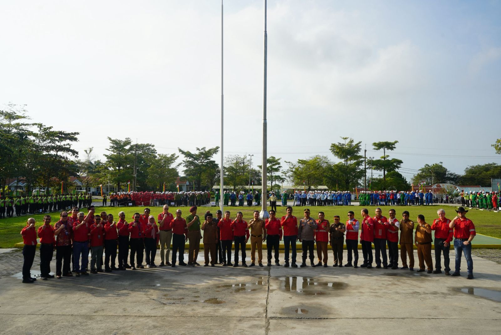 Inspektur upacara dipimpin langsung Wakil Bupati Pelalawan, H. Husni Tamrin, SH, sebagai bentuk komitmen bersama dalam memperkuat budaya kerja yang aman, sehat, dan produktif.