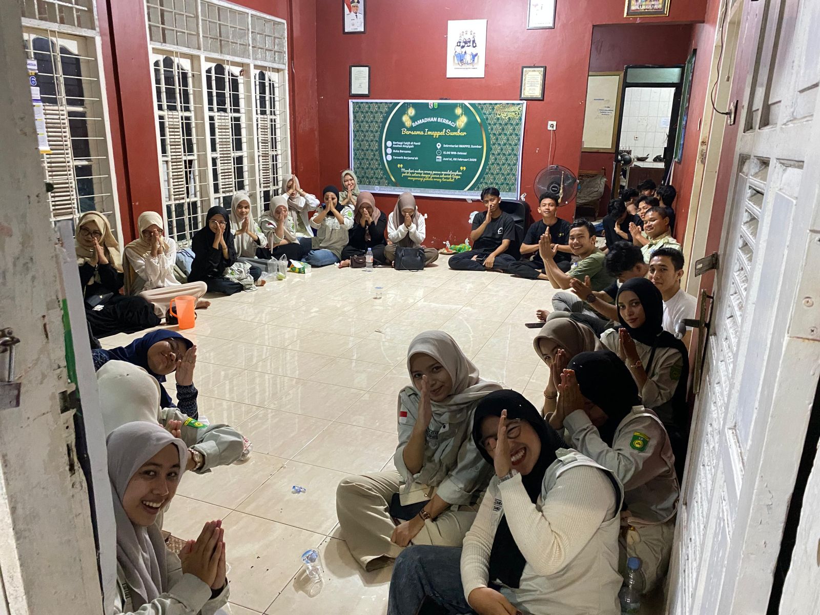 GARDAPOS.COM, SUMATERA BARAT — Ikatan Mahasiswa Pelajar Pelalawan (IMAPPEL) Sumatera Barat (Sumbar) menggelar kegiatan berbagi takjil pada Jumat 6 Maret 2026 di Panti Asuhan Aisyiyah serta dilanjutkan dengan buka puasa bersama di Sekretariat IMAPPEL Sumbar.